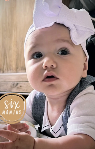 Amazing capture! I love the way her sweet little shoulders slope slightly forward as she rests her arms on the table. Only 6 months old yet already she looks comfortable in her skin. I love this photo of Olivia. ❤️
