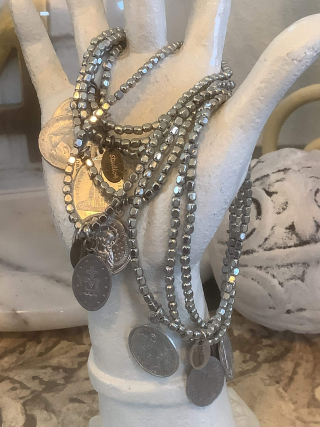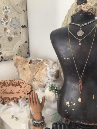 On my first visit to France, Corey introduced me to the Brocante, and I immediately loved everything, French. I found so many beautiful treasures. She helped me how to get these treasures back home! During that visit, I noticed Corey's necklace, a cluster of French religious medals. I was amazed to hear these were all little pieces of history made many years ago with various dates, each representing a special meaning. To know they all had a story of a pastime just fascinated me. I asked-
