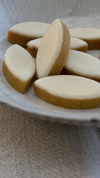 “Its origins date back to the 13th century but it appeared in the 15th century with the emergence of a legend: during the second wedding of King René (Count of Provence) with Jeanne de Laval, known for never smiling, the court pastry chef created this confection especially for the new queen who, after tasting it, became joyful. A courtier then asked his neighbor what could have given the queen so much pleasure, to which he replied: "Di Calin Soun" which means "These are hugs".