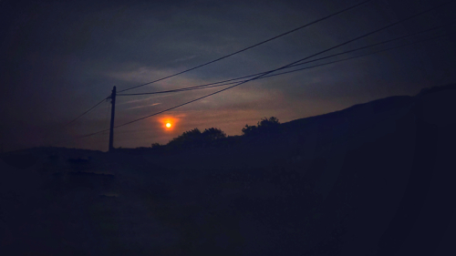 Then, with focused effort, the moon came out behind the silhouette of the landscape.