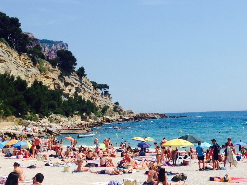 Cassis' beach is not sandy; instead, it is full of pebbles.