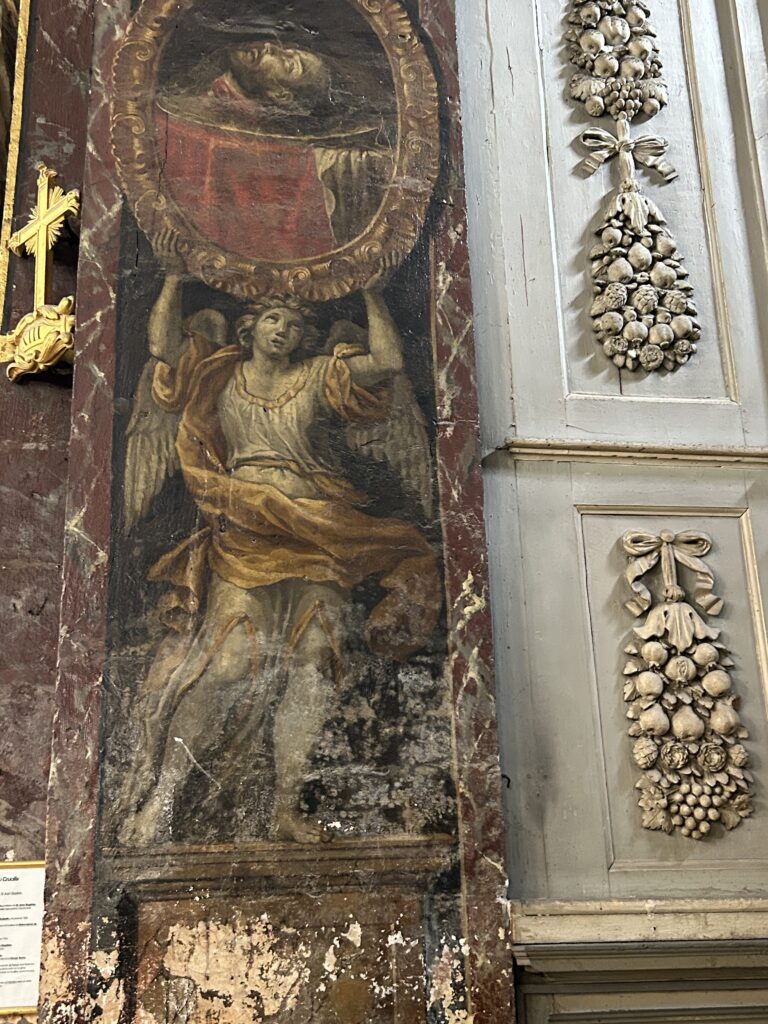 One of the principal artists who contributed to the Collégiale Notre-Dame-des-Anges was Jean Péru, born in 1650- best known for the 22 wood and gilded allegorical statues representing the Virtues.