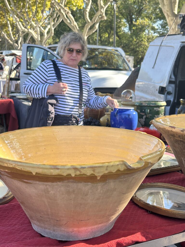 Hallelujah, Our guest is feeling much better (merci), and she wasted no time making up for the lost day. Two club chairs later—yes, two—some pharmacy jars, antique dishes, and a collection of silverware that would make any brocante-lover weak in the knees, and voilà: she’s officially in brocante biting spirit.
