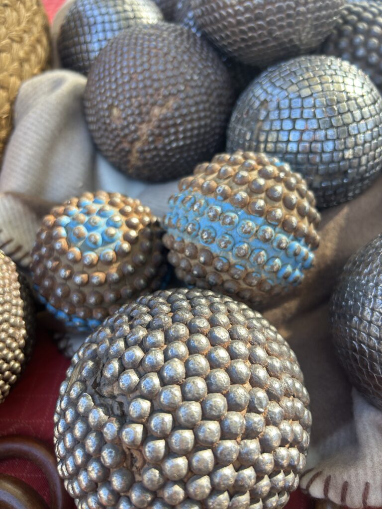 Here’s a photo of the Lyonnaise pétanque balls from the 1800s that I came across—solid, hand-forged nailed beauties with all the charm (and weight!) of a bygone era. Though the Lyonnaise version of the game is played a little differently, it goes more or less like this: