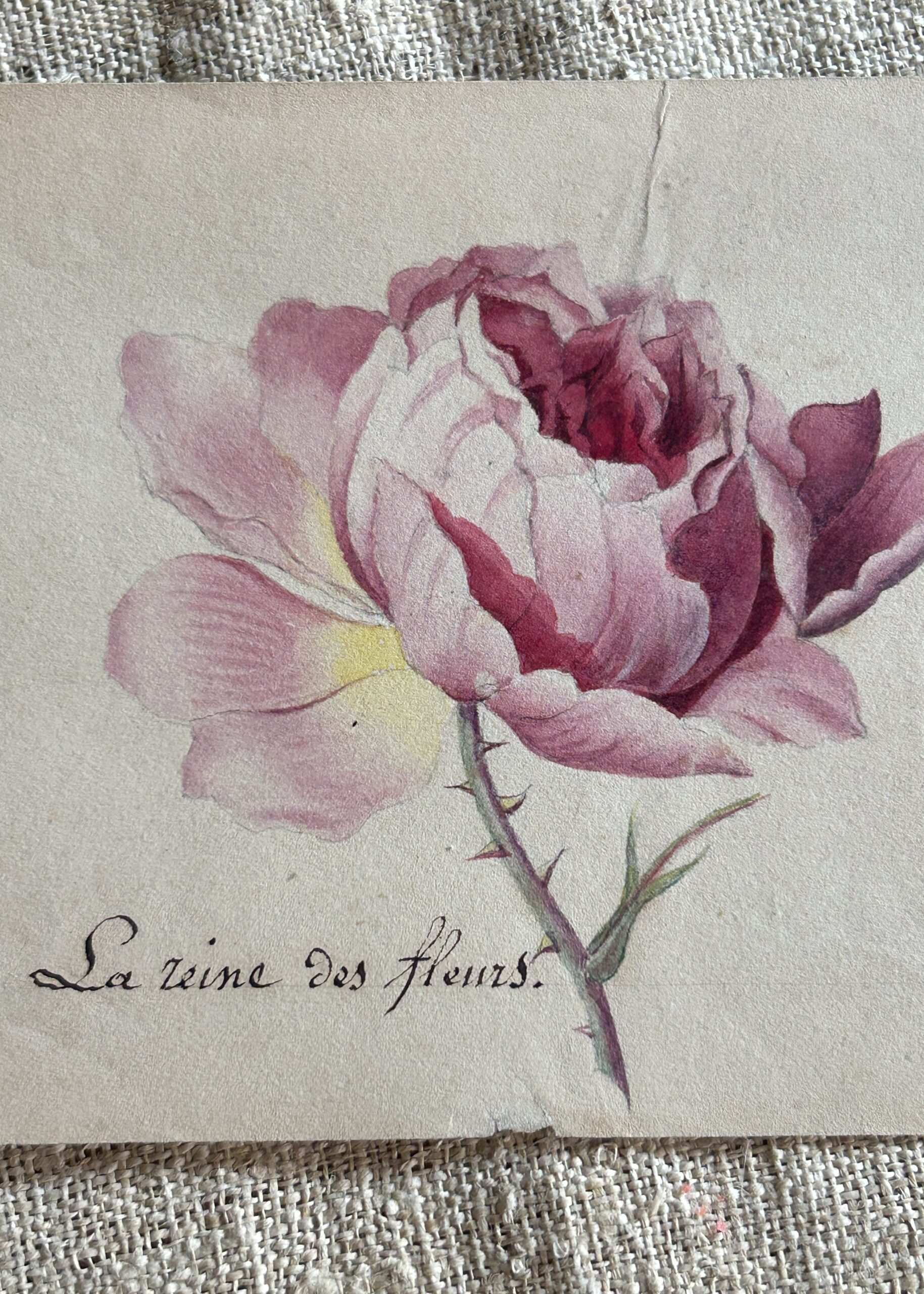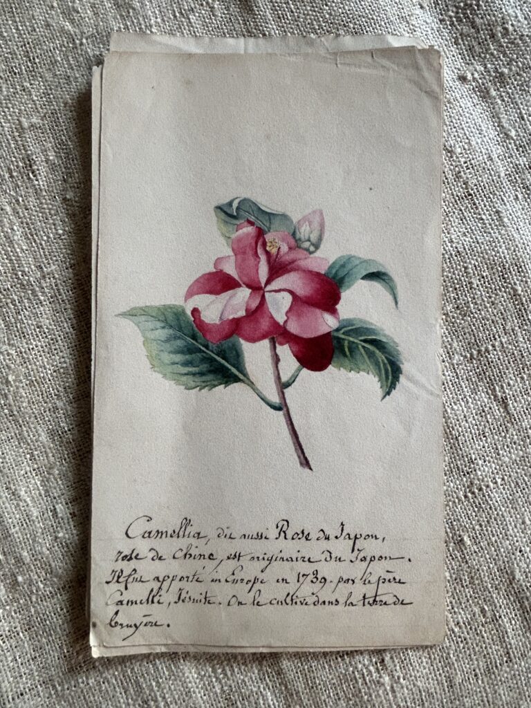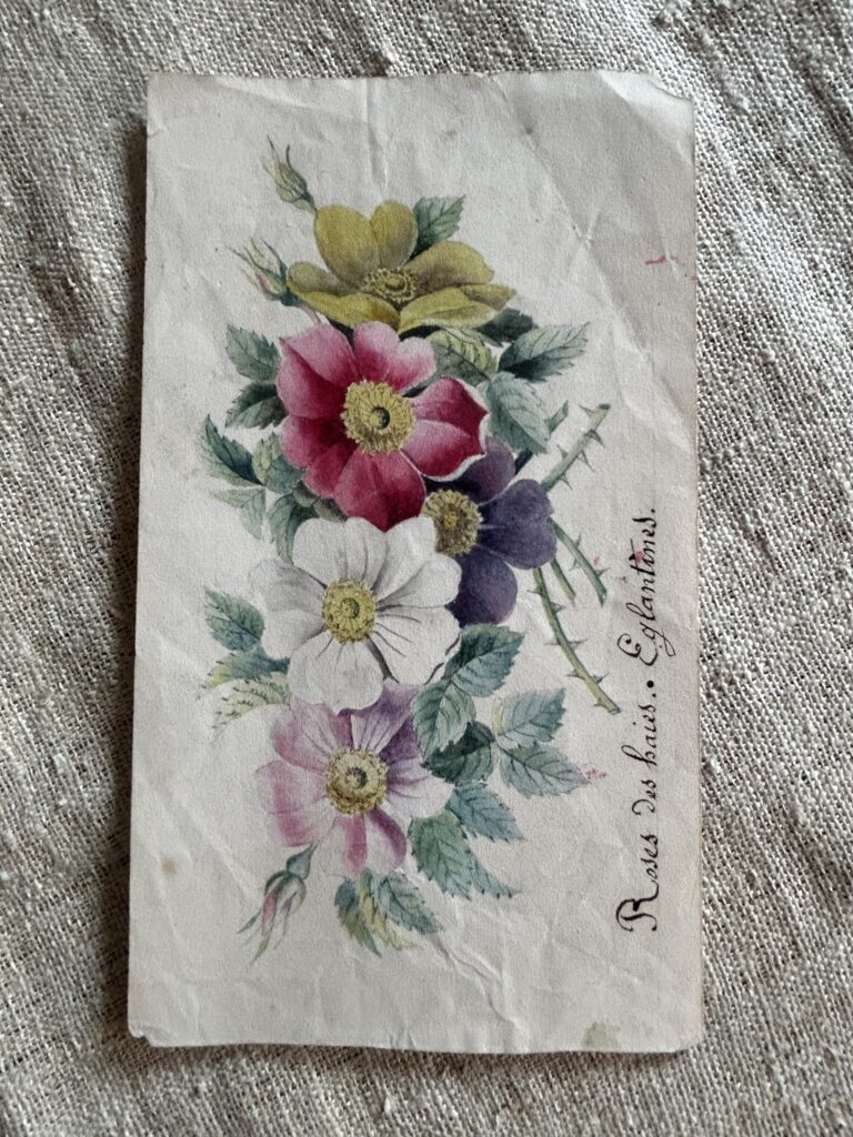 An artist’s loose-page notepad I found at the brocante. Dated 1866 — delicate, pristine, delightful. Each painting perfectly scripted with descriptive text.
