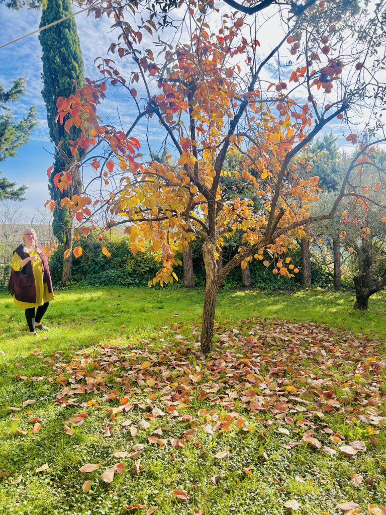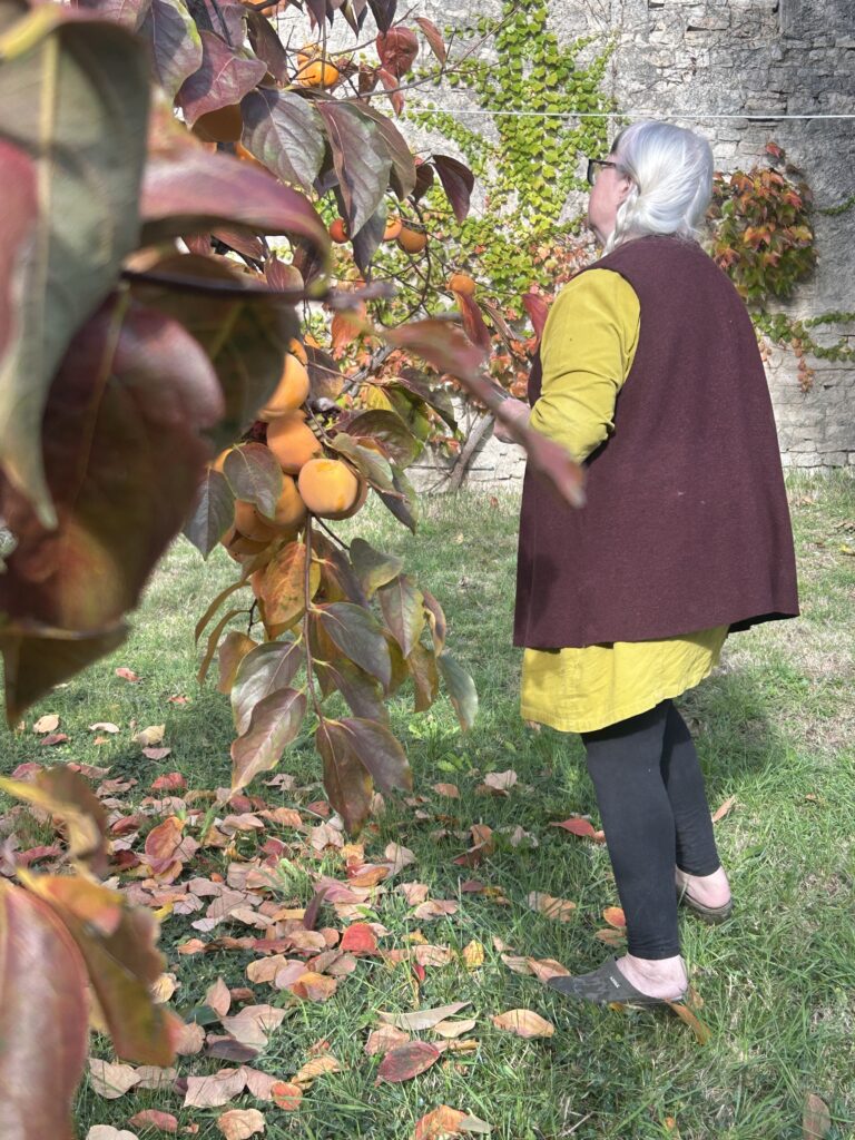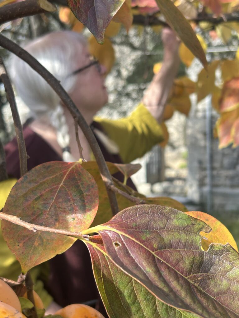 This afternoon I wandered out to my friends’ olive orchard, where one sunburst persimmon tree—heavy with golden fruit—stood like a jeweled guest among the silver leaves. Arnelle had just cut me a few branches for decor, their bright orbs glowing against the green. The air itself seemed to hold its breath for the click of my camera.