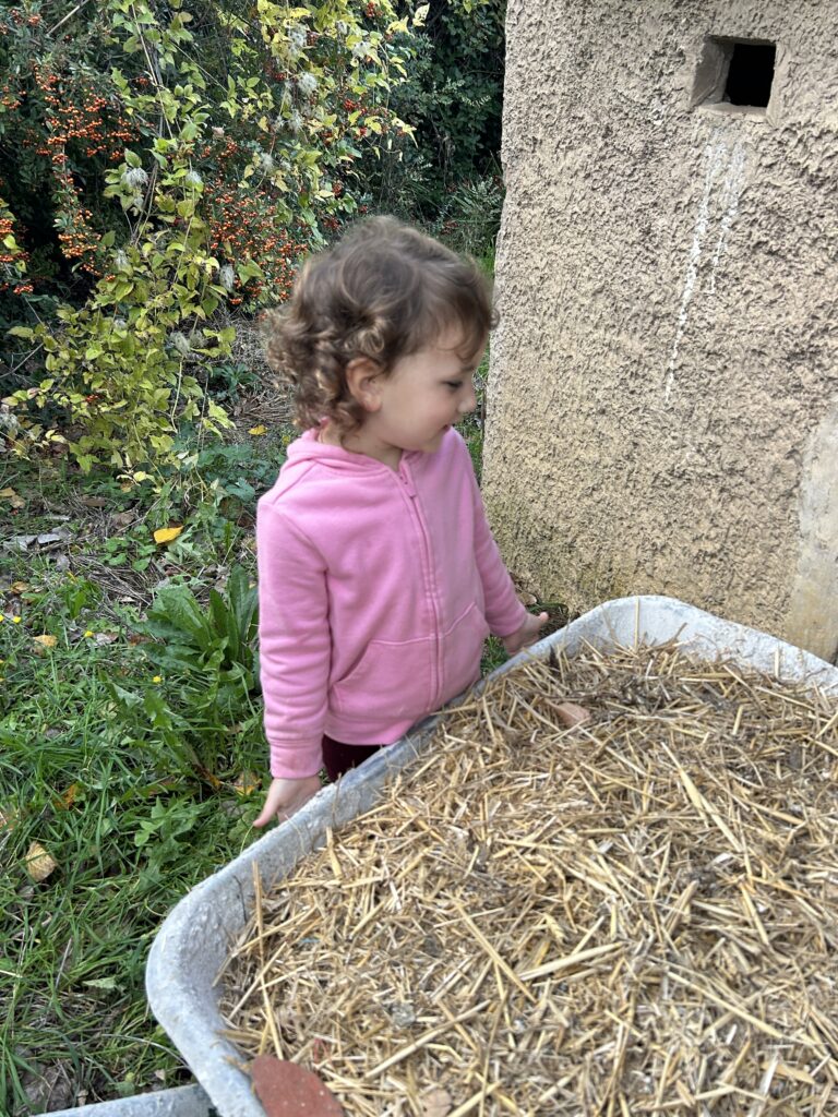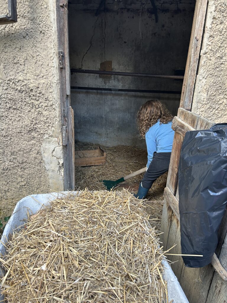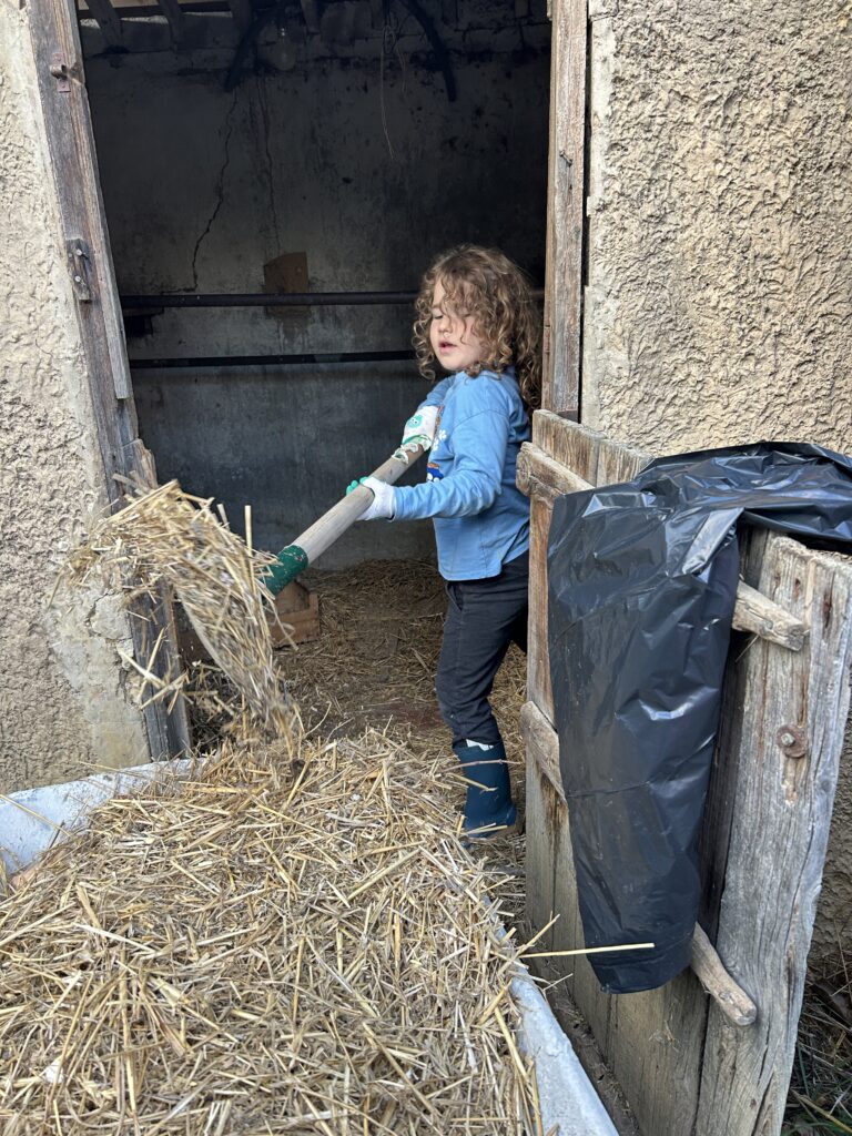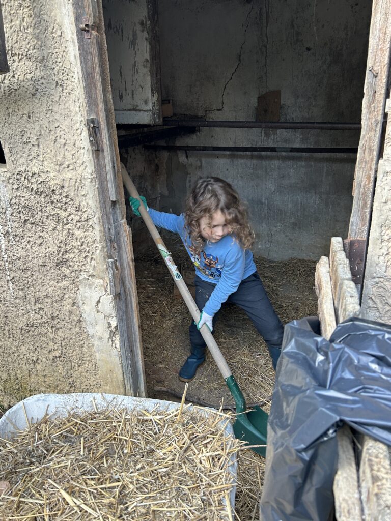 From the photo, you can see it needs quite a bit of work. Gabriel took on the task of clearing it out while Olivia supervised. They hope to be ready for four chickens—one egg for each of them.