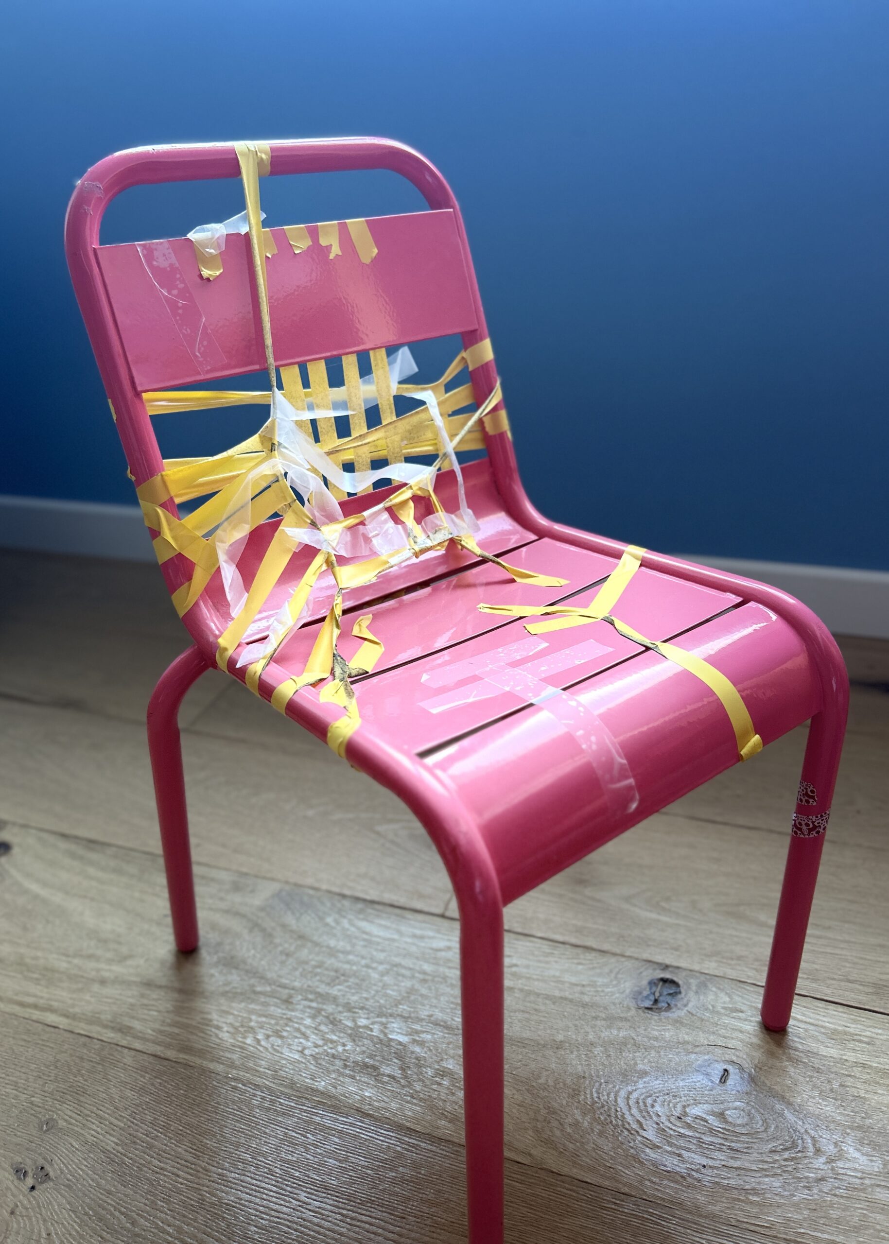 When we got home Gabriel went to work. Mazes, sculptures, mysterious installations that only he could explain. Months later, he’s still at it, wrapping, taping, twisting… an ongoing exhibition- everywhere.