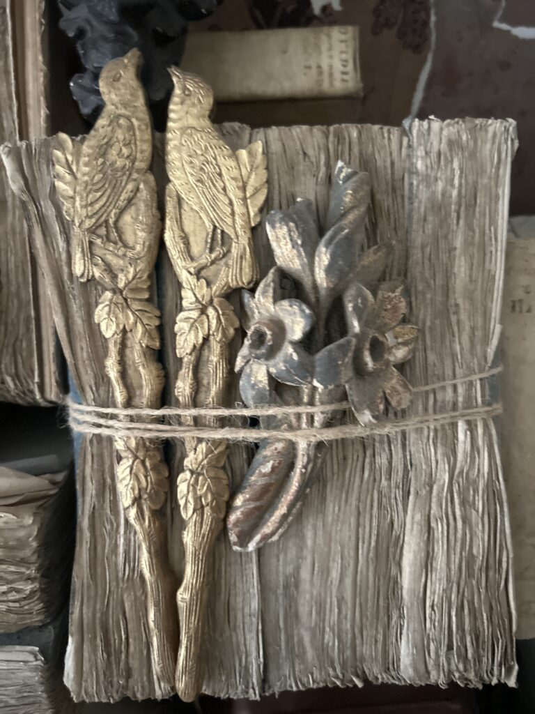 These are little things that found their way to me through my thirty‑some years of antiquing in France. I’ve sold plenty of things, but somehow these little bits and pieces just stayed with me. They are not valued monetarily, just because they seem to appeal to the little romance inside of me with antiques.
