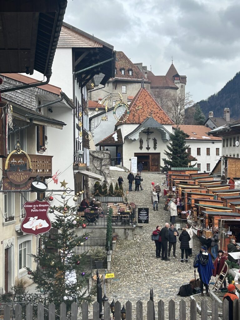 Gruyères itself is steeped in history: a beautifully preserved medieval town founded around the 12th century and crowned by its impressive hilltop castle, once home to the Counts of Gruyère.