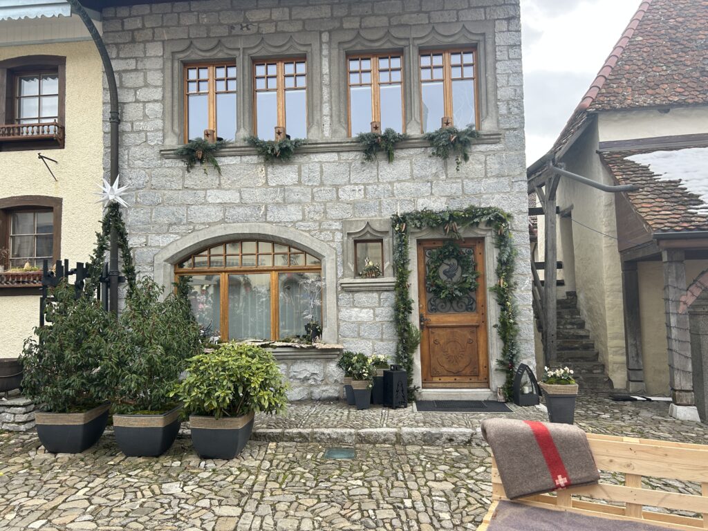 Our niece Juliette and her husband Stephan invited us to Switzerland, to the Hotel Cailler. Before meeting them, we spent the night in Gruyères.