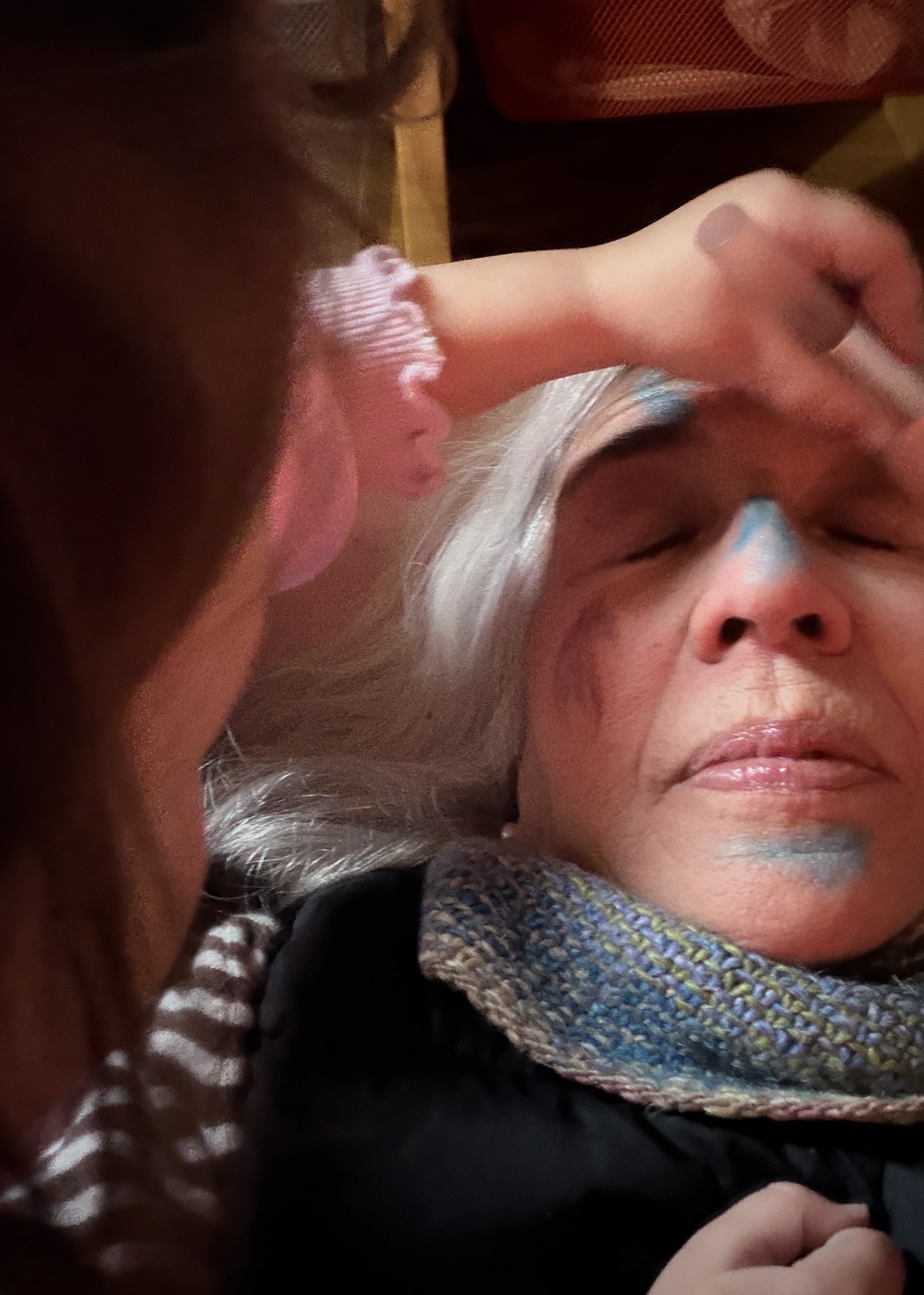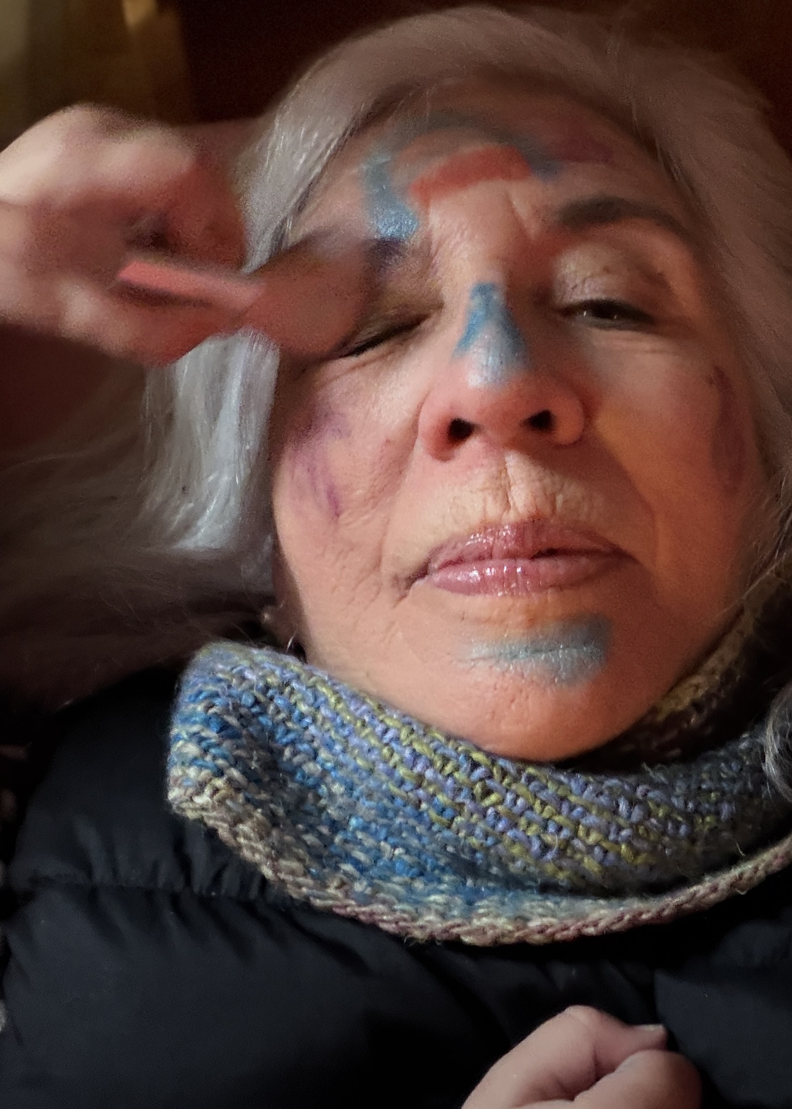 These weren’t muted colors—they were the kind you’d paint on a circus clown: bright, bold, and going straight into every pore and wrinkle (especially at my age).