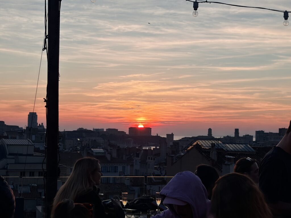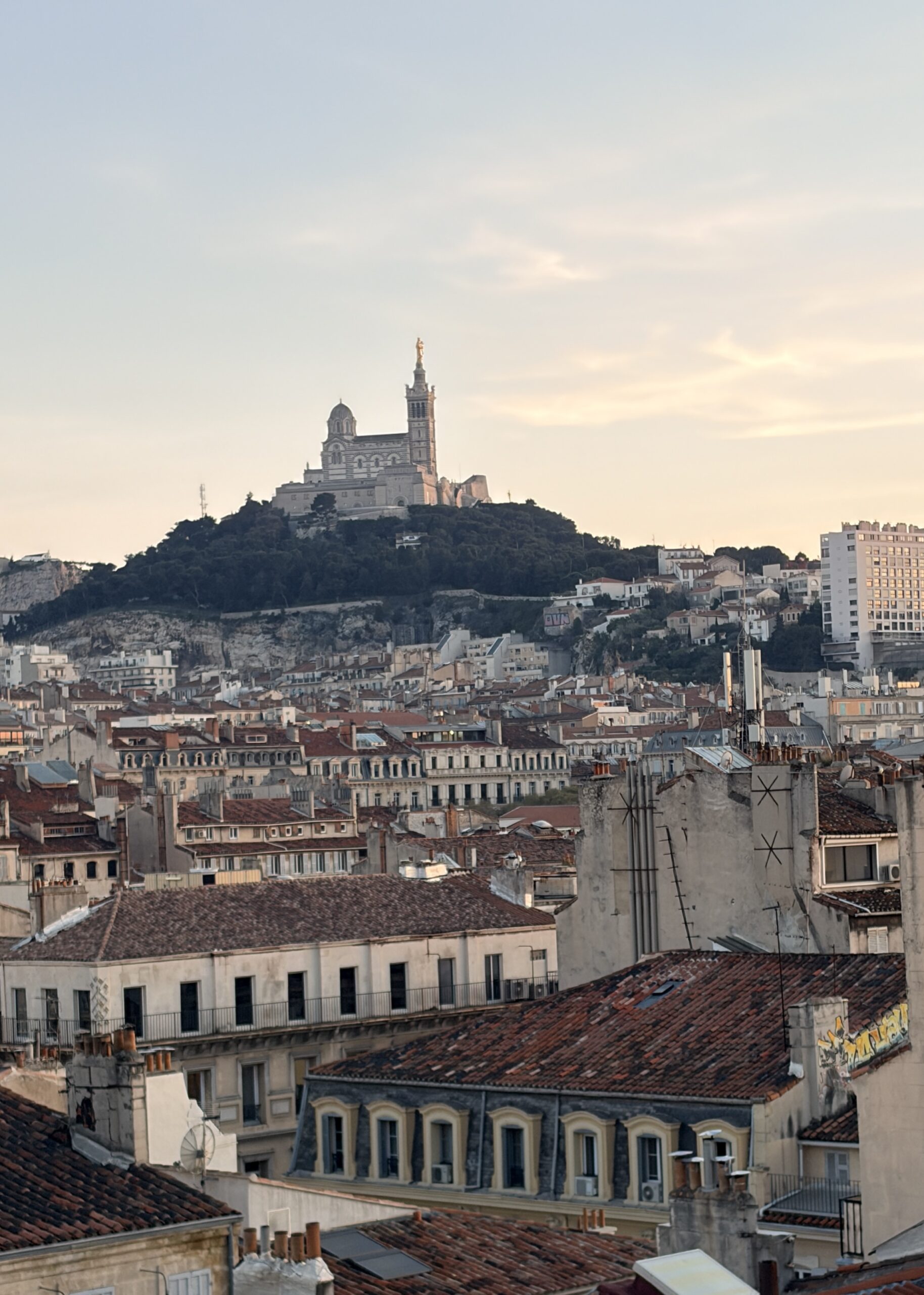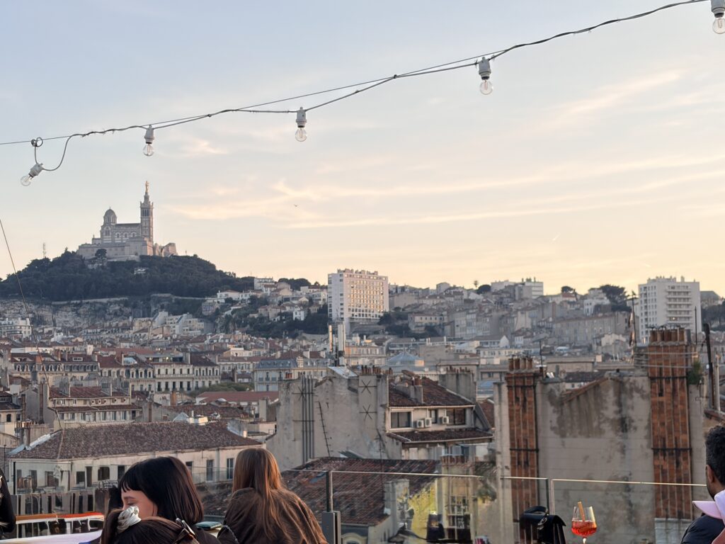 Ciel sits high above Marseille, a rooftop surprise in the middle of the city. At the top of the highest building, the view opens wide—over the rooftops, toward the Old Port, and across to Notre-Dame de la Garde watching over it all.